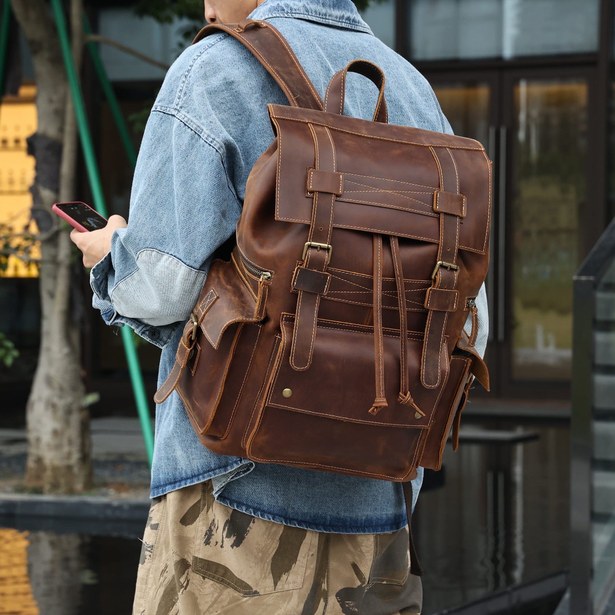 The Drawstring leather backpack offers a sleek, modern design with unmatched practicality. Crafted from premium top-grain cowhide leather, it features a secure drawstring closure and a magnetic flap to keep your belongings safe from the elements. Ample interior space, multiple pockets, and a convenient luggage strap make it ideal for both daily use and travel.